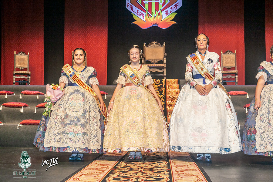 Ana Fayos ja ha rebut la banda de mans de la Fallera Major d’Alzira, Lluch Comins, que l’acredita com a Fallera Major d’El Mercat 2026. També Carla Costa va rebre la seua com a integrant de la Cort d’Honor infantil i Mario Vila pujà a l’escenari del Gran Teatre.